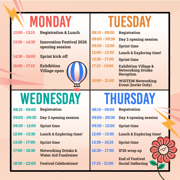 Registration for the Festival will open mid May. Stay tuned to our social channels (links below) and make sure you sign up to our Innovation Connect community mailing list to get all the latest Festival and Innovation information as soon as it drops!